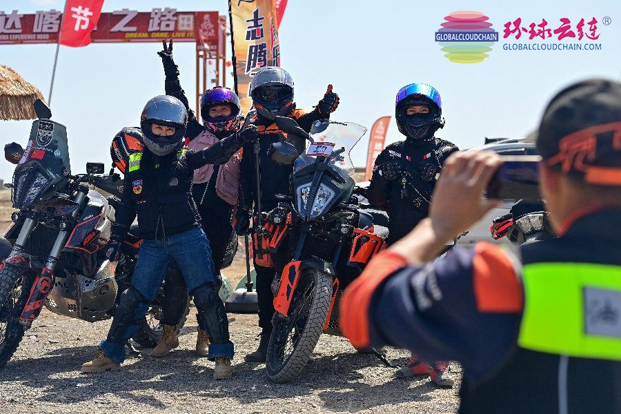 2024年5月1日,在新疆克拉玛依市乌尔禾区世界魔鬼城景区,车友在自驾线路起点合影。新华社记者 丁磊 摄