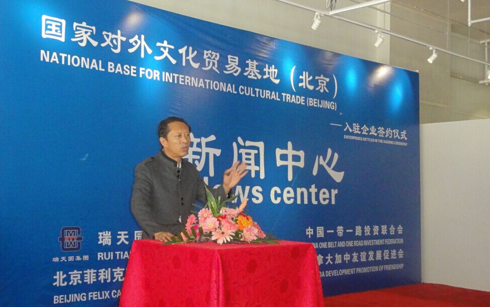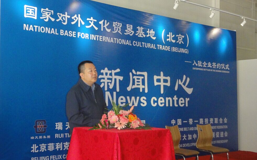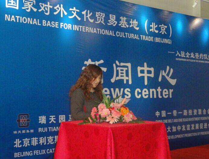 2016年5月6日,文洽会、北京京交会之“一带一路”、“茶马古道文化贸易交易会新闻发布会”在北京天竺保税区的国家对外文化贸易基地成功举行。会上,国家对外文化贸易基地代表、北京菲利克斯猫动漫发展有限公司总经理、中国传统文化产业发展中心文化金融委员会副主任许洪双先生表示将带领入驻基地的企业参加文洽会、北京京交会、北京(国际)设计周等几个北京知名的名片文化盛会。