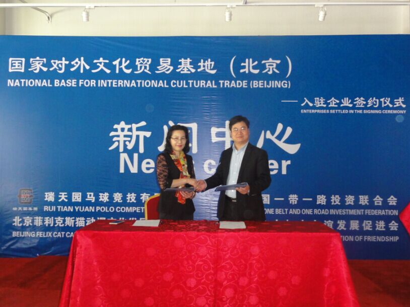 国际文化产业投资洽谈会海外合作中心主任王晓玲代表文洽会与国家对外文化贸易基地代表、北京菲利克斯猫动漫发展有限公司总经理许洪双先生当天签署了意向合作协议