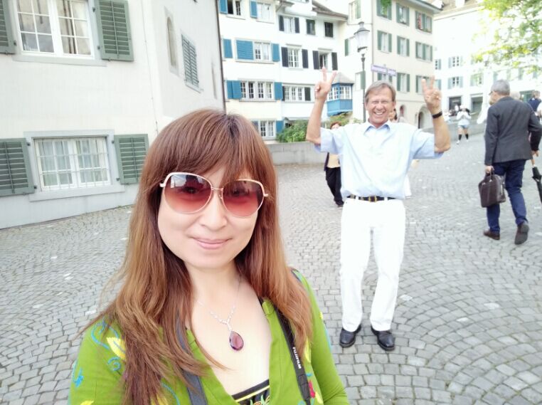 穿过情人桥,就下起了雷阵雨。在路过的小礼品店中逗留半小时,顺便买了两个有瑞士标识的小锁。雨停,灰麻麻多云,出来小店,转角,遇到了正在找寻的尼德道尔夫(Niederdorfstrasse)街巷。因为细长蜿蜒,真不像大街的格局,姑且就叫悠悠小巷吧!