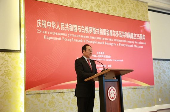 全国政协副主席王钦敏在庆祝中国与白俄罗斯和摩尔多瓦建交25周年招待会上致辞