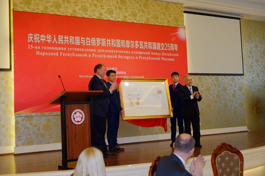2017年1月11日,庆祝中华人民共和国与白俄罗斯共和国和摩尔多瓦共和国建交25周年招待会在中国人民对外友好协会举行。中国全国政协副主席王钦敏、全国政协副秘书长张秋俭、外交部部长助理李惠来、中国人民对外友好协会副会长宋敬武以及白俄罗斯共和国驻华大使馆特命全权大使、经济学博士、富布赖特项目研究学者鲁德·基里尔先生(简称鲁德)、摩尔多瓦共和国驻华大使奥雷尔·乔克伊先生(简称乔克伊)等出席活动王钦敏副主席和鲁德大使、乔科伊大使分别致辞,并为中华人民共和国与白俄罗斯共和国和摩尔多瓦共和国建交25周年纪念封分别揭幕。宋敬武副会长主持招待会。