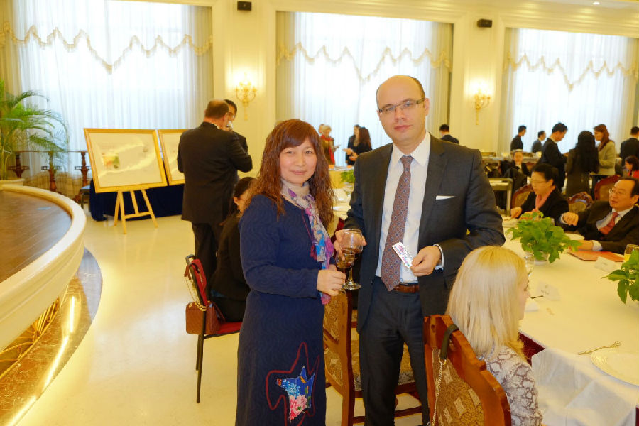 世界商人网董事总经理兼总编王晓玲与摩尔多瓦共和国驻华大使奥雷尔·乔克伊先生在短暂会面并合影