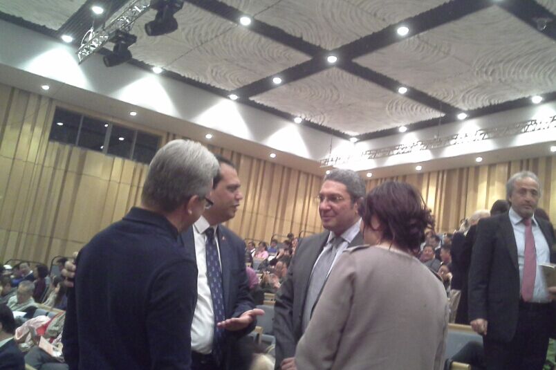 演出中场休息时间约旦哈希姆王国驻华大使叶海亚? 卡拉莱先生与埃及驻华文化、科技、教育参赞侯赛因?伊卜拉欣先生,埃及驻华参赞谢里夫?哈西姆先生沟通交往